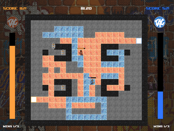 1976: All City is a local two-player PVP, arcade-style turf war game. 1976: All City pits players against each other in a 3-round tactical race against each other and the clock to paint as much of the field in their color as possible before time runs out.